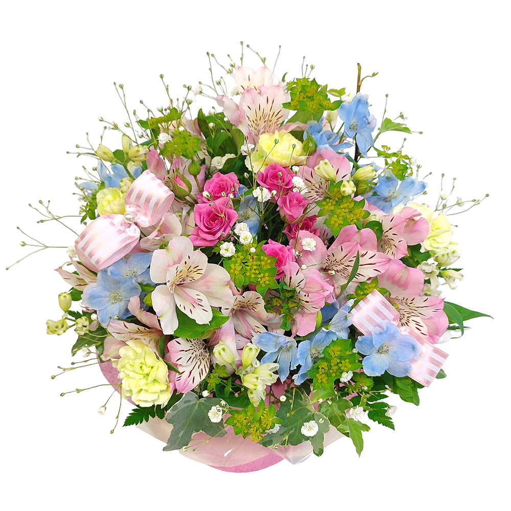 アルストロメリア、スプレーカーネーション、スプレーバラ、グリーン等
