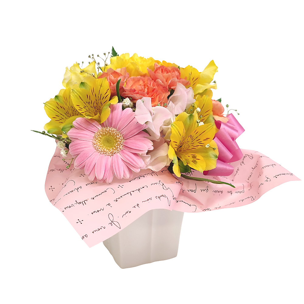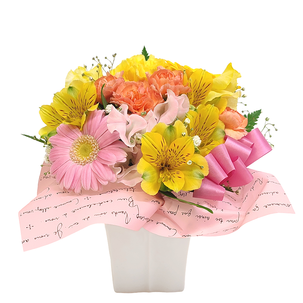スイートピー、スプレーカーネーション、ガーベラ、グリーン等