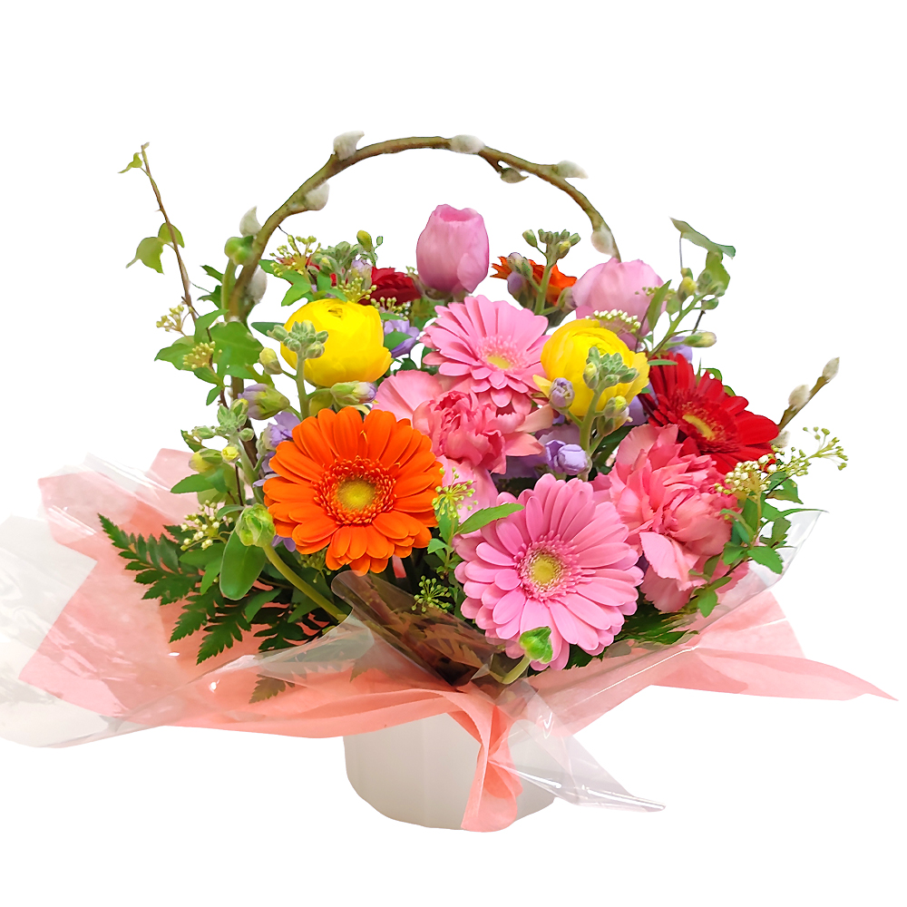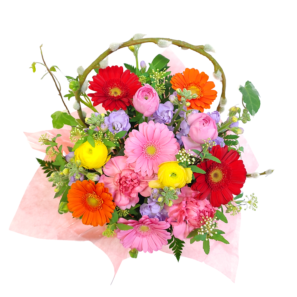 ラナンキュラス、ガーベラ、スプレーカーネーション、グリーン等